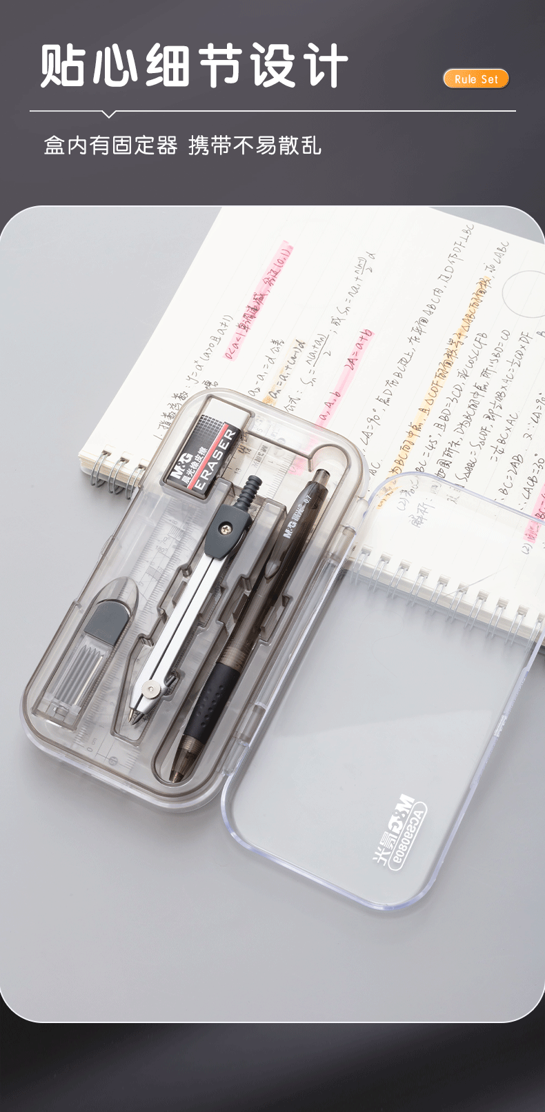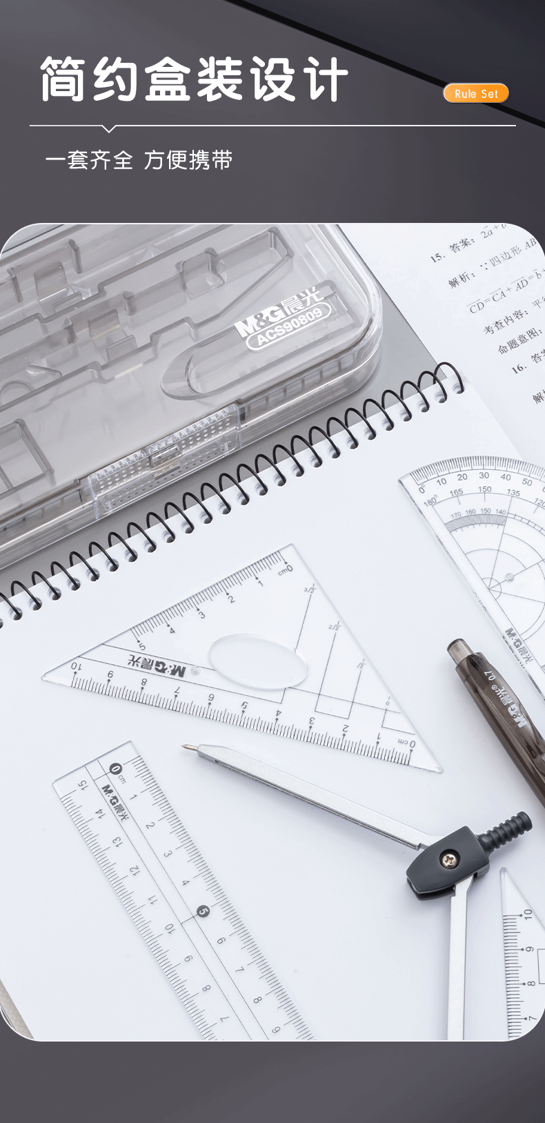 晨光(M&G)文具学生考试绘图套装(圆规+橡皮+自动铅笔+铅芯+套尺四件套)组合装 开学文具8件套ACS90809+半自动省力削笔机 铅笔削笔器 卷笔刀转笔刀APS95672