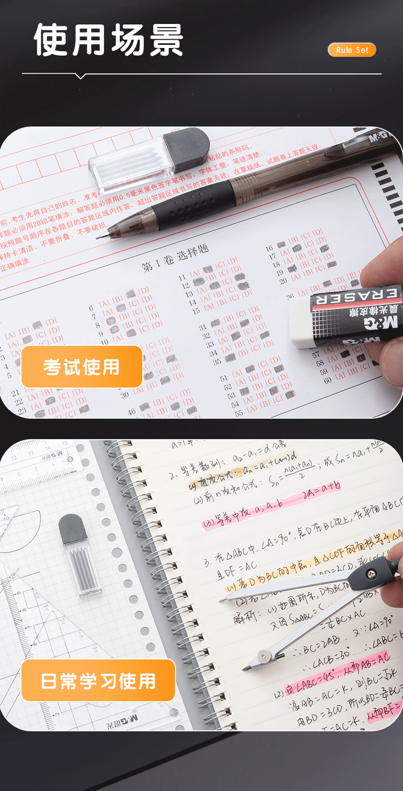 商品名称:晨光(M&G)文具学生考试绘图套装(圆规+橡皮+自动铅笔+铅芯+套尺四件套)组合装 开学文具8件套ACS90809+半自动省力削笔机 铅笔削笔器 卷笔刀转笔刀APS95672