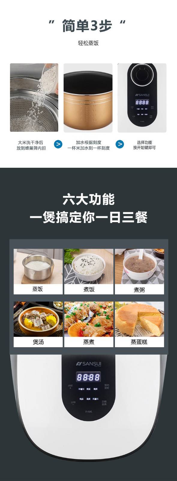 商品名称:山水(sansui)智能电饭煲DJ-50C003(SF-135) 白色