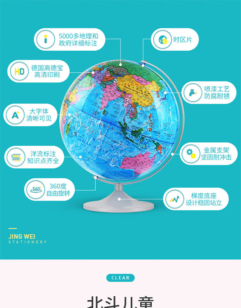 商品名称:北斗地理灯光AR地球仪(32cm学生高清大号)G3299DAR 6922396321337