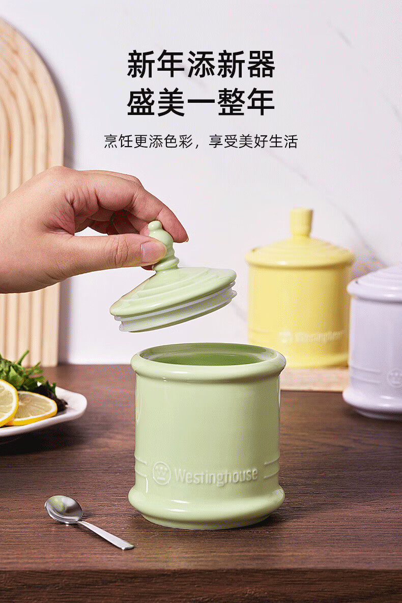 商品名称:西屋(Westinghouse) 调料罐厨房家用陶瓷盐罐调味罐盐味精调料瓶猪油罐组合套装 麦芒黄(赠木勺子)单个 WTP05A1