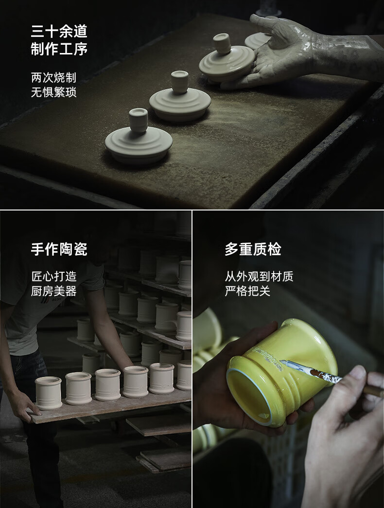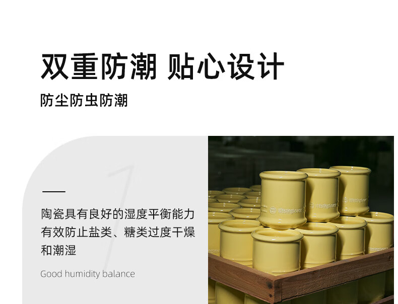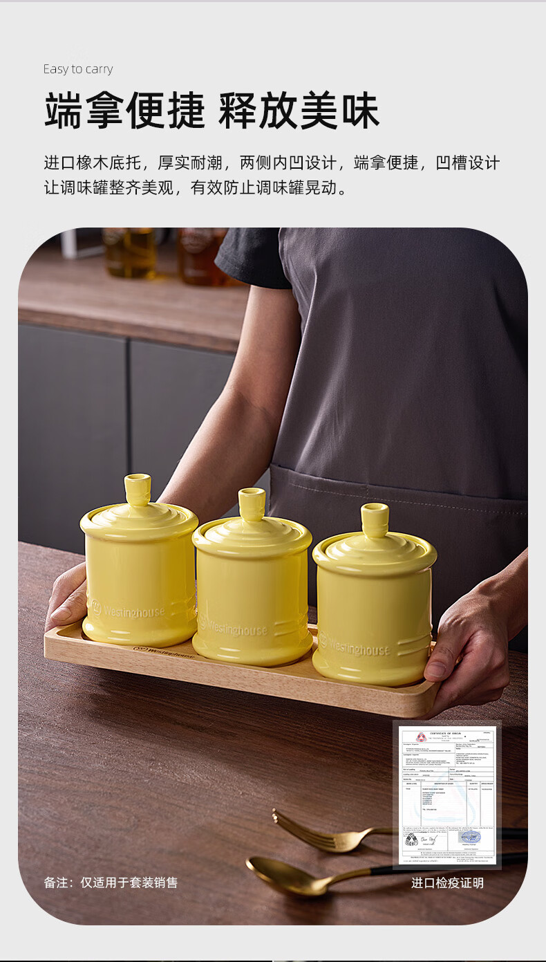 西屋(Westinghouse) 调料罐厨房家用陶瓷盐罐调味罐盐味精调料瓶猪油罐组合套装 麦芒黄(赠木勺子)单个 WTP05A1