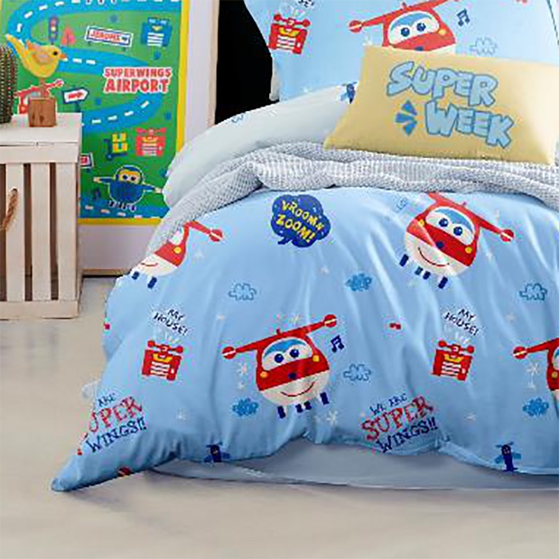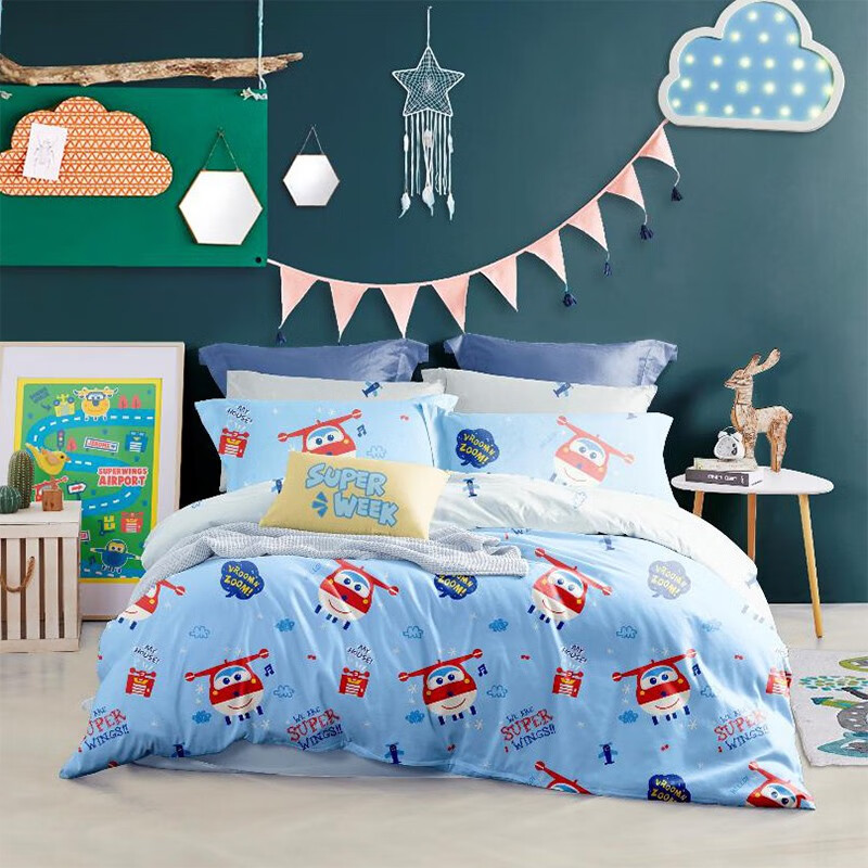 LOVO超级飞侠全棉斜纹四件套200x230 VSADF0292 乐迪出发