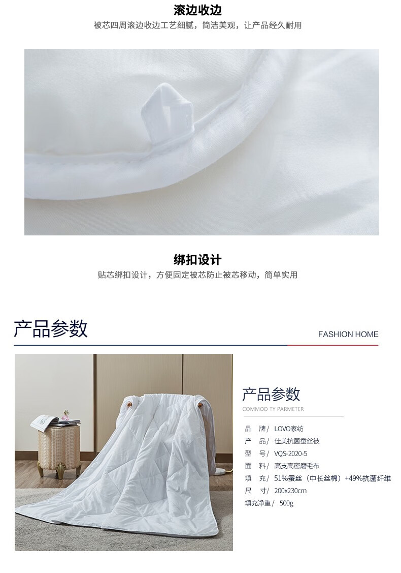 商品名称:LOVO 佳美蚕丝抗菌被 200x230cm VQS-2020-5