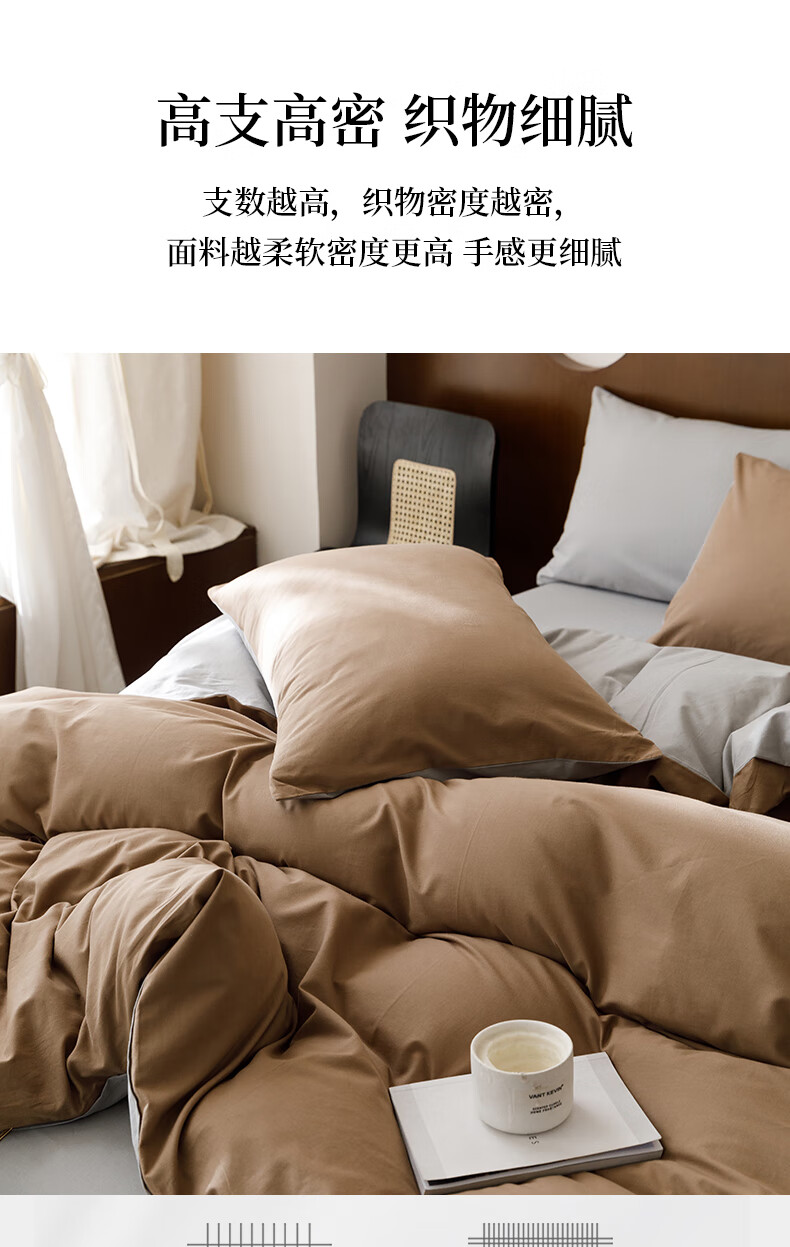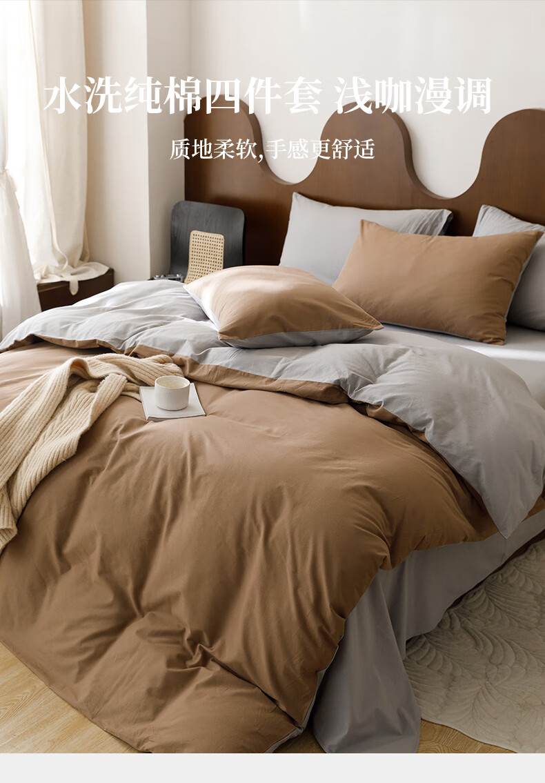 商品名称:红秀世纺 水洗纯棉四件套 200x230 HX2211-C004 浅咖漫调