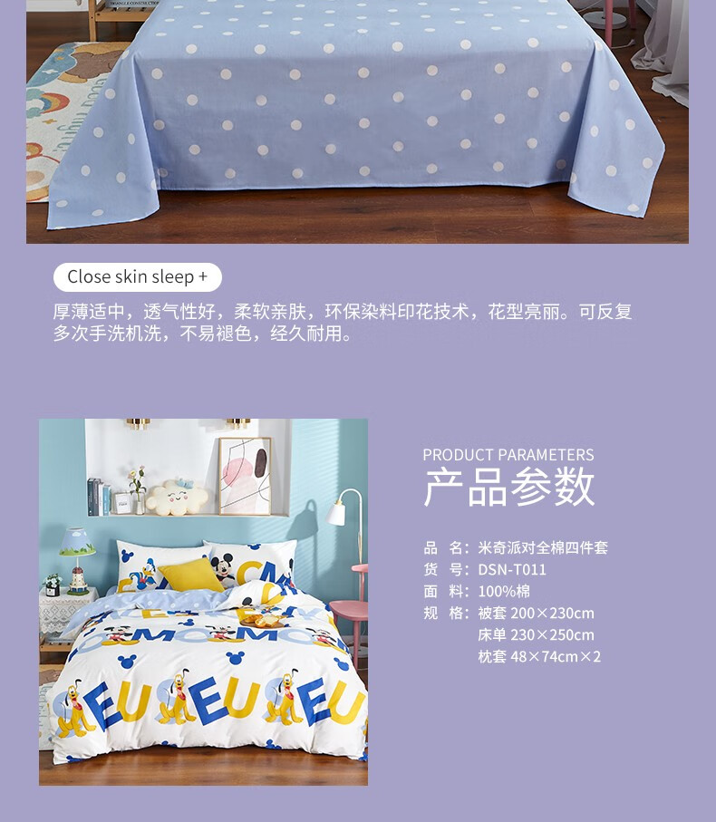 商品名称:迪士尼 米奇派对全棉四件套 200×230 DSN-T011