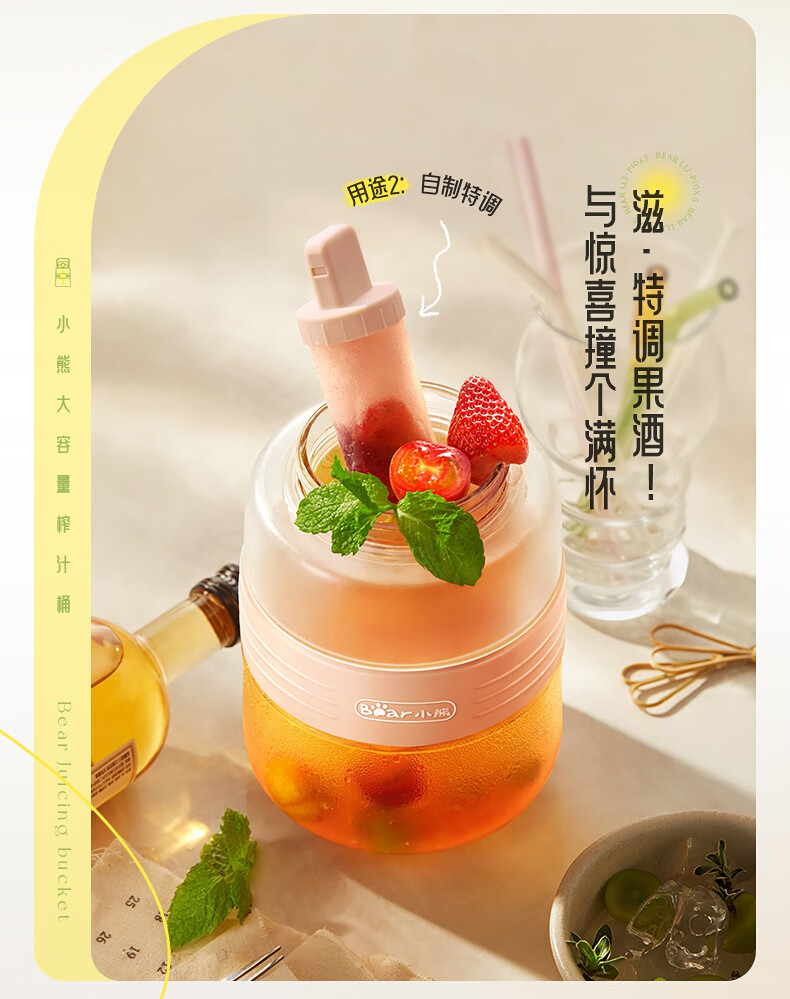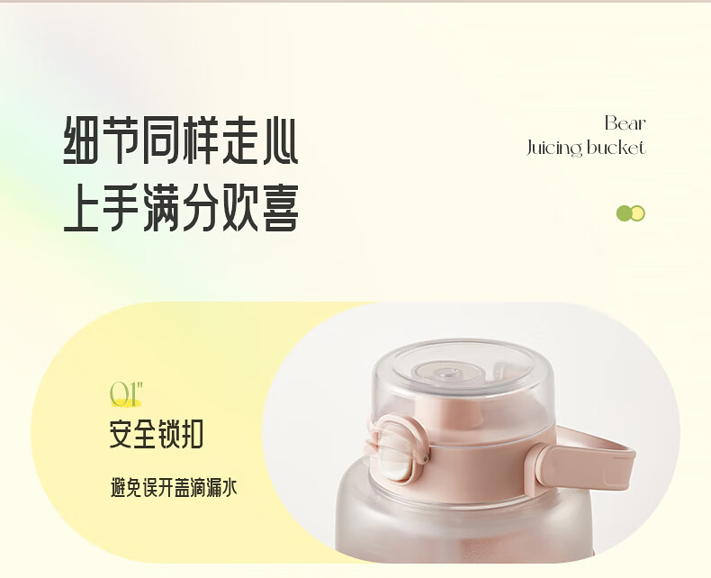 小熊(Bear)榨汁机吨吨桶家用便携式榨汁杯无线充电果汁机户外随行杯果汁杯 12叶刀可碎冰榨汁桶LLJ-P10X5 1L容量 6940971256898