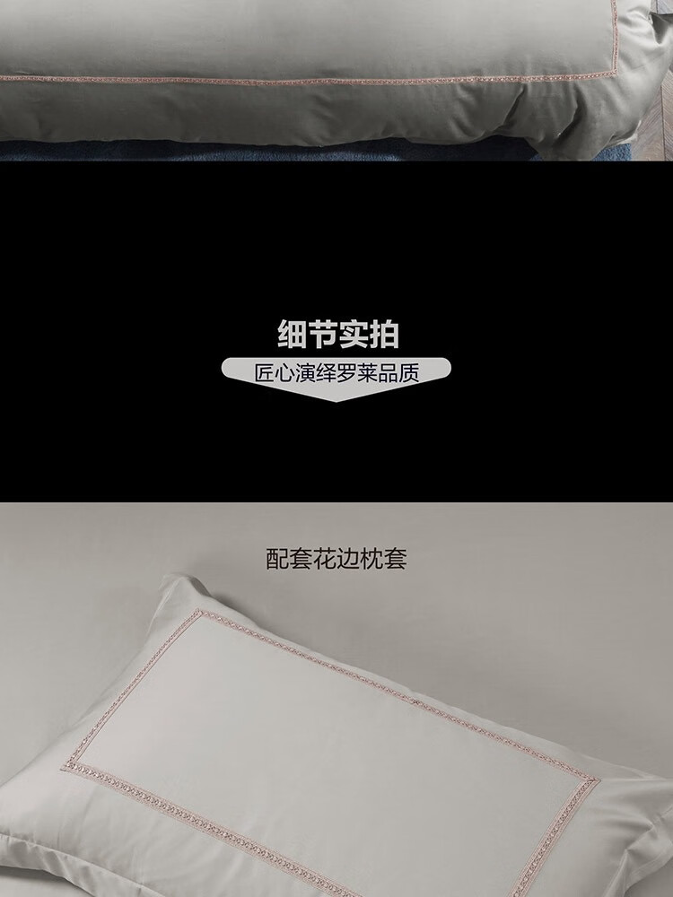 商品名称:罗莱 恬淡之歌HB-L60S全棉贡缎四件套(灰)200*230cm 6901974096300
