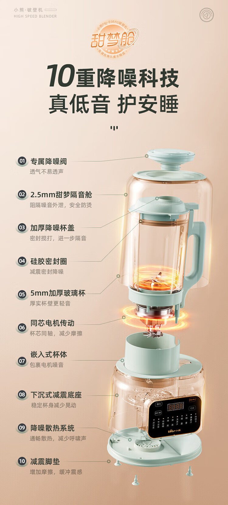 小熊(Bear) 轻音破壁机家用料理机 榨汁机 辅食机 PBJ-E08B5【ZMD安心系列】6940971256478