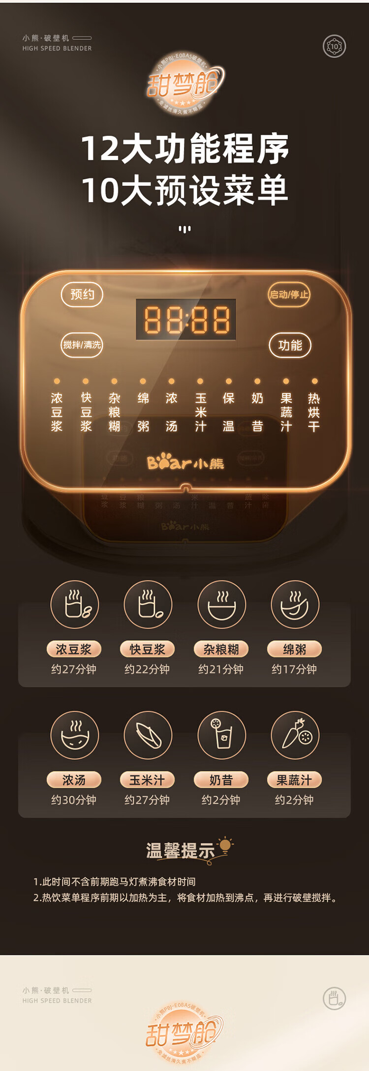 商品名称:小熊(Bear) 轻音破壁机家用料理机 榨汁机 辅食机 PBJ-E08B5【ZMD安心系列】6940971256478