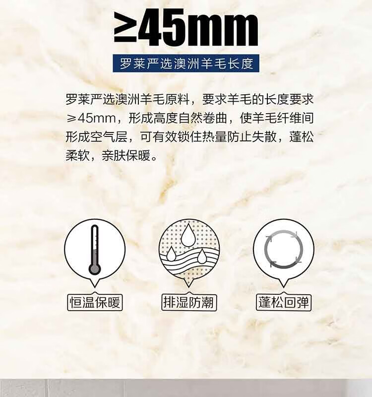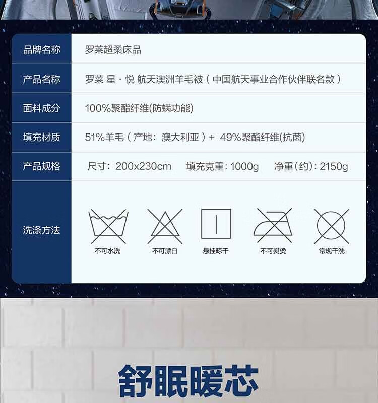 商品名称:罗莱 A类航天澳洲羊毛冬被-1 200*230cm 2000g 6901974339636