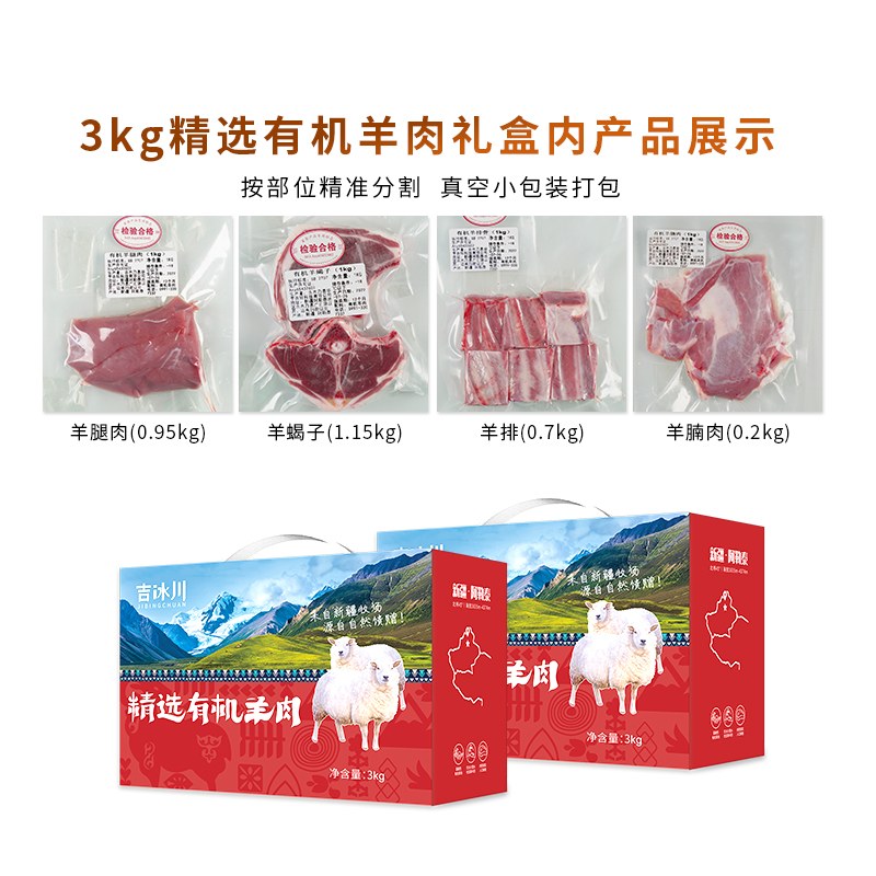 商品名称:吉冰川 精选有机羊肉礼盒 3kg 6970749110428