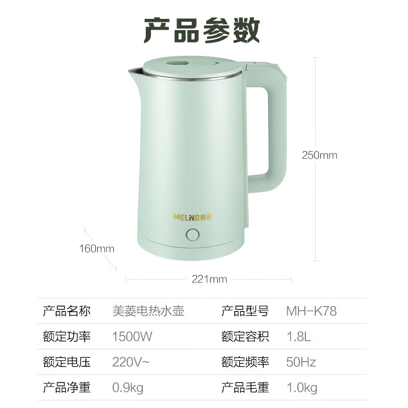 商品名称:美菱 电水壶MH-K78 1.8L