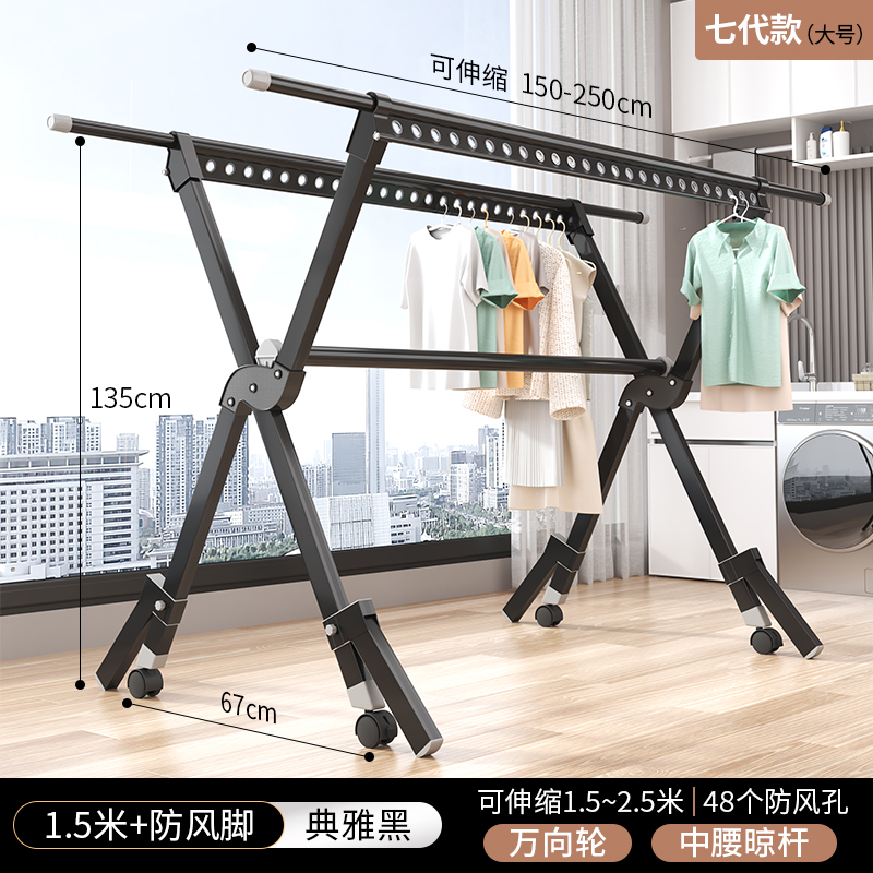 Drying rack 七代防风脚叉型衣架1.5米 枪灰/黑色/银色 可选下单备注颜色