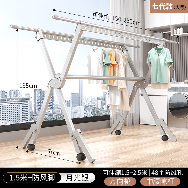 商品名称:Drying rack 七代防风脚叉型衣架1.5米 枪灰/黑色/银色 可选下单备注颜色
