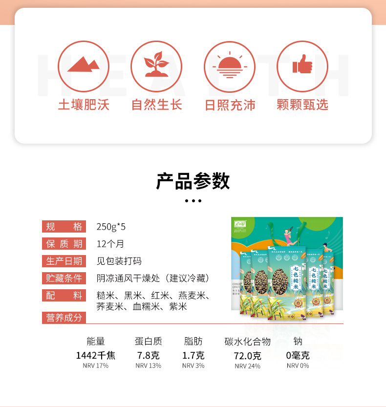 商品名称:山野源粮 七色糙米礼盒标配款 250g*5 6972761600321