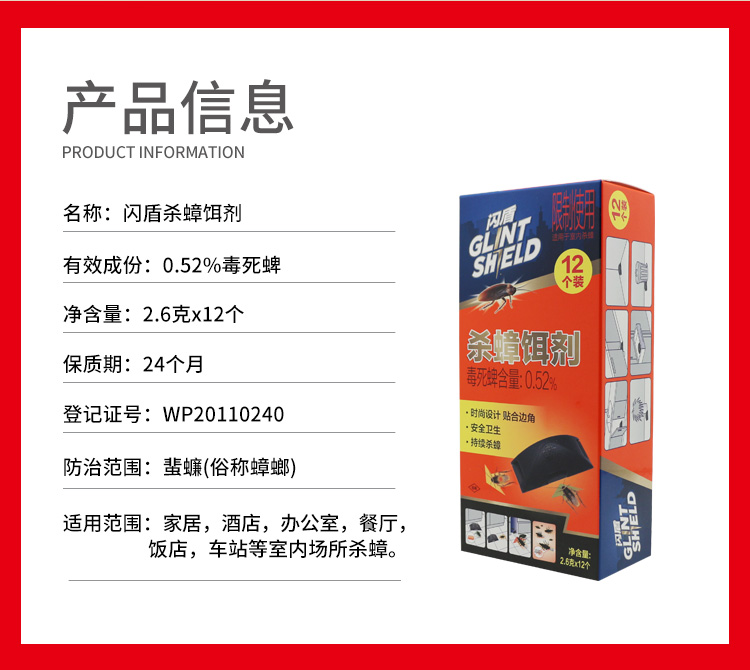 商品名称:集采 闪盾 杀蟑饵剂(0.52% 毒死蜱)2.6G*12 G-0962 6928485300962 10件起发