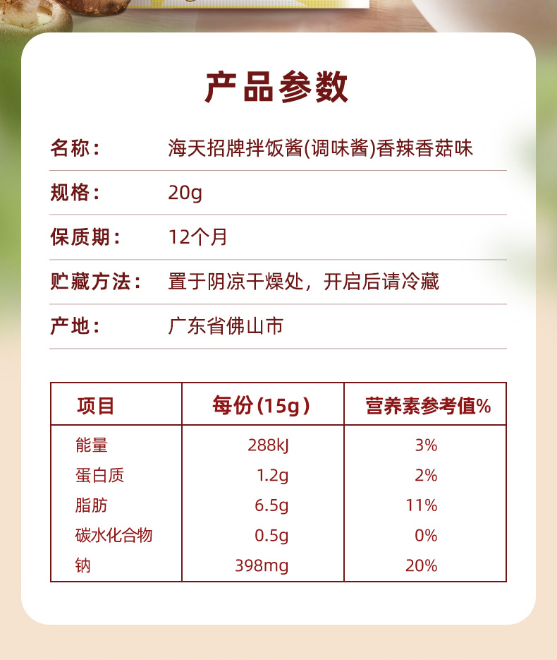 商品名称:海天(小盒装)招牌拌饭酱20g*5袋