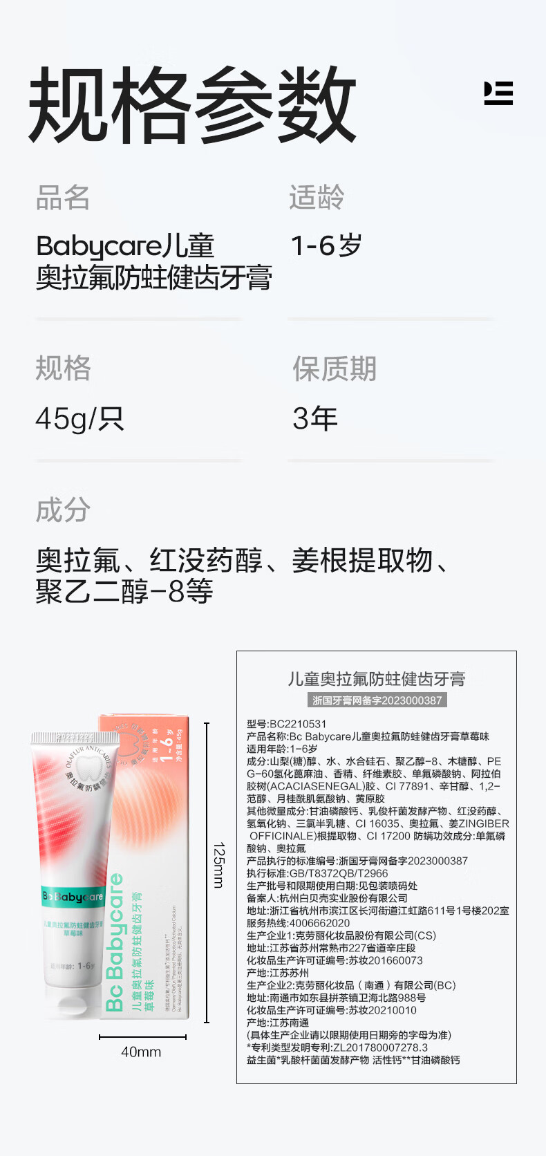 商品名称:Babycare婴幼儿奥拉氟健齿牙膏45g BC2210531