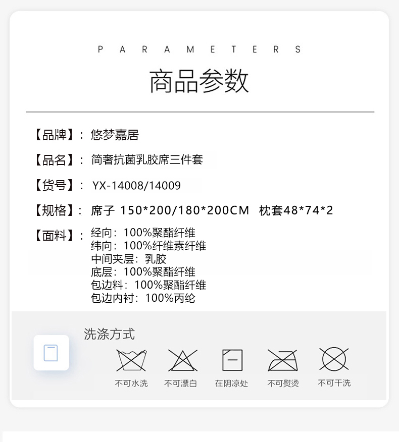 商品名称:悠梦嘉居 YX-14008 简奢抗菌乳胶席三件套 150*200 冰川蓝(内蒙、新疆、西藏、青海、宁夏、甘肃运费另算)