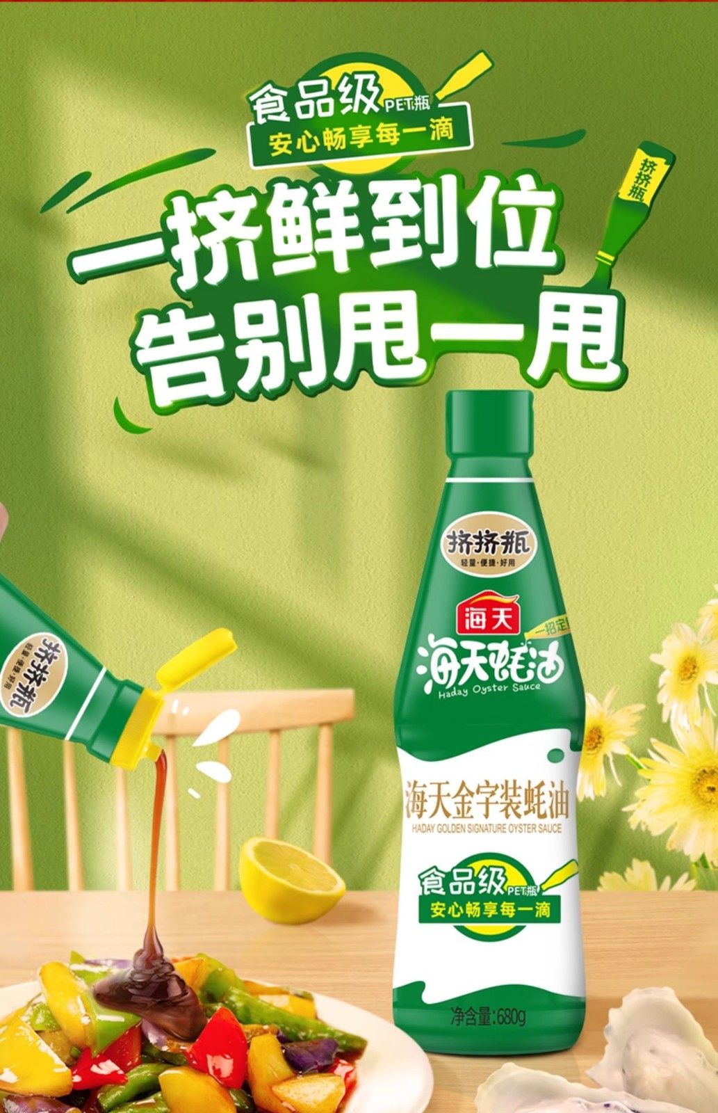 海天 鲜味生抽750ml+老抽酱油500ml+金字装蚝油680g
