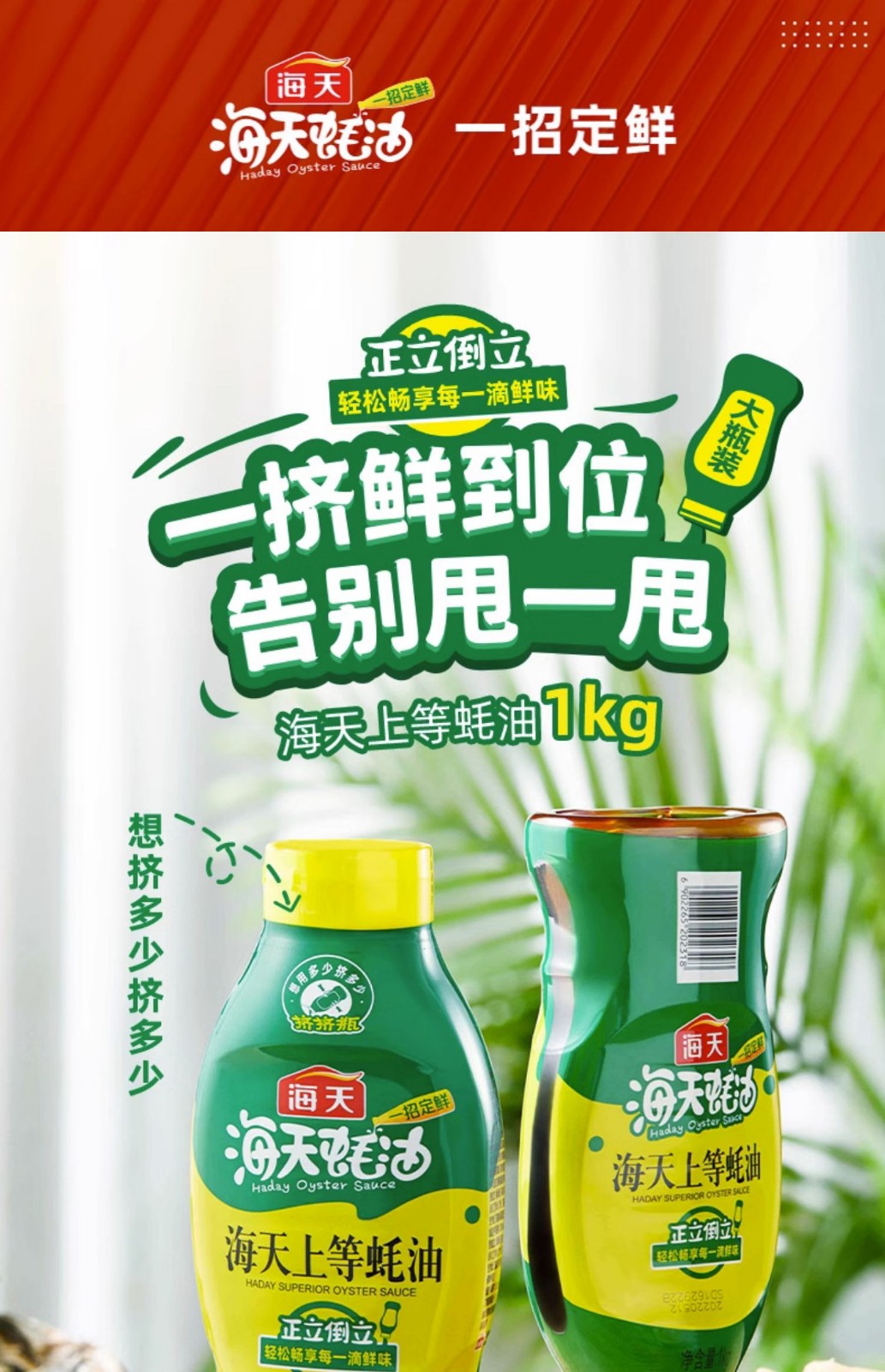 商品名称:海天 鲜味生抽750ml+上等蚝油1kg+精制料酒800ml+陈酿醋1.28L+黄豆酱300g+0金标生抽100ml+盐焗粉30g