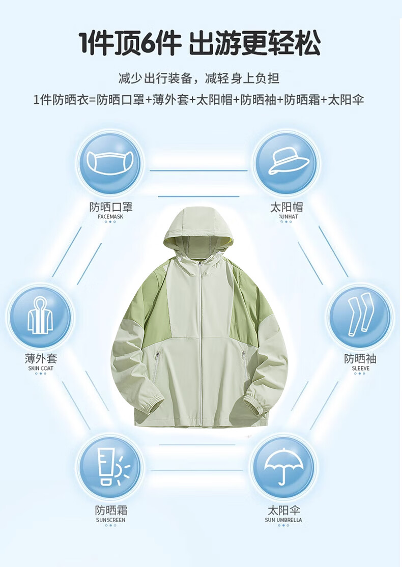 商品名称:EILEI E2508拼色男女款防晒衣(UPF50+)S-5XL 颜色随机发 可选下单备注尺码