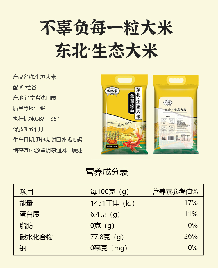 商品名称:媛妈家 东北生态大米5KG 编织袋包装