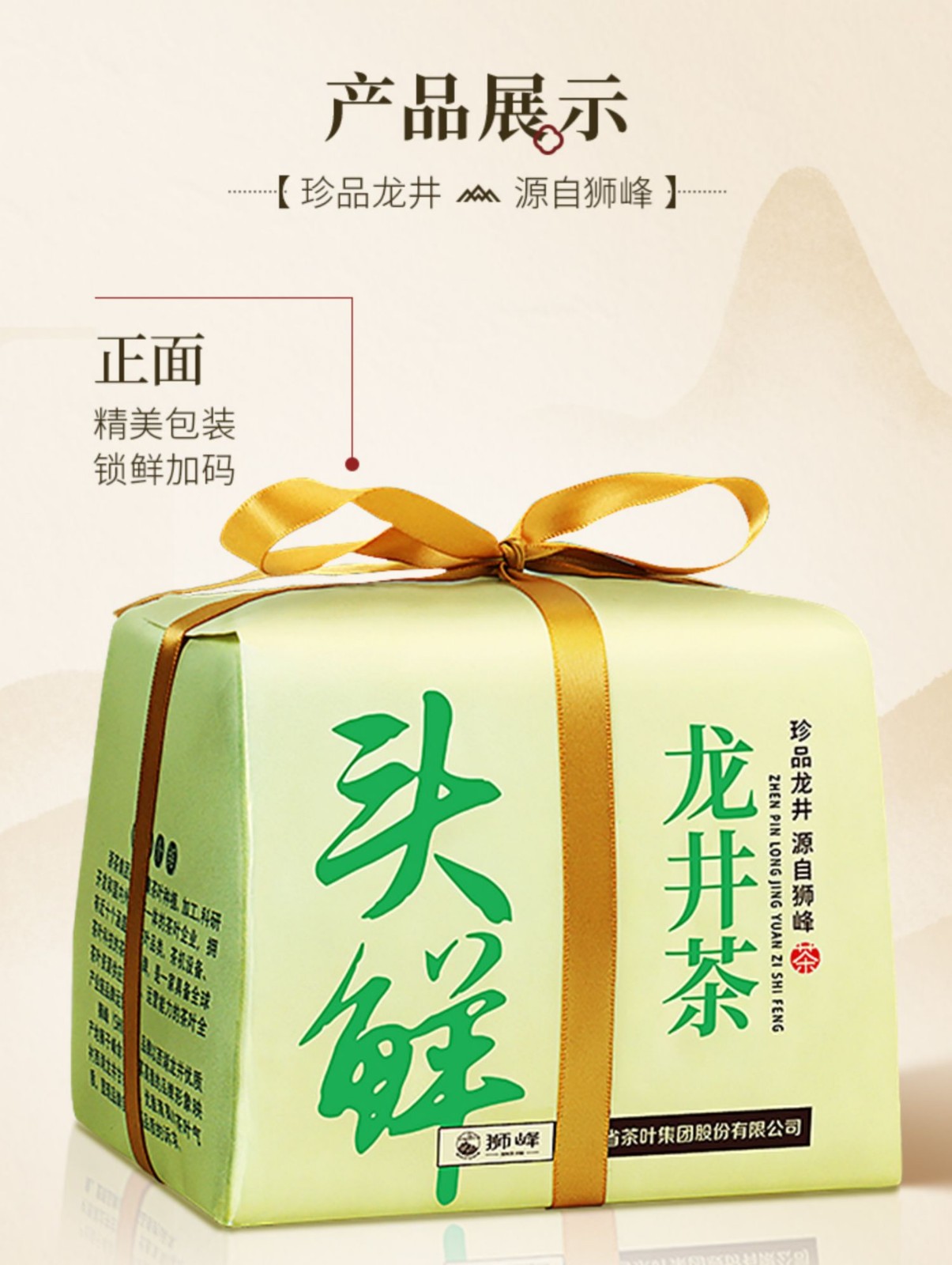 商品名称:狮峰牌 龙井茶江南赋优品头鲜竹盒 250g 6952128504257