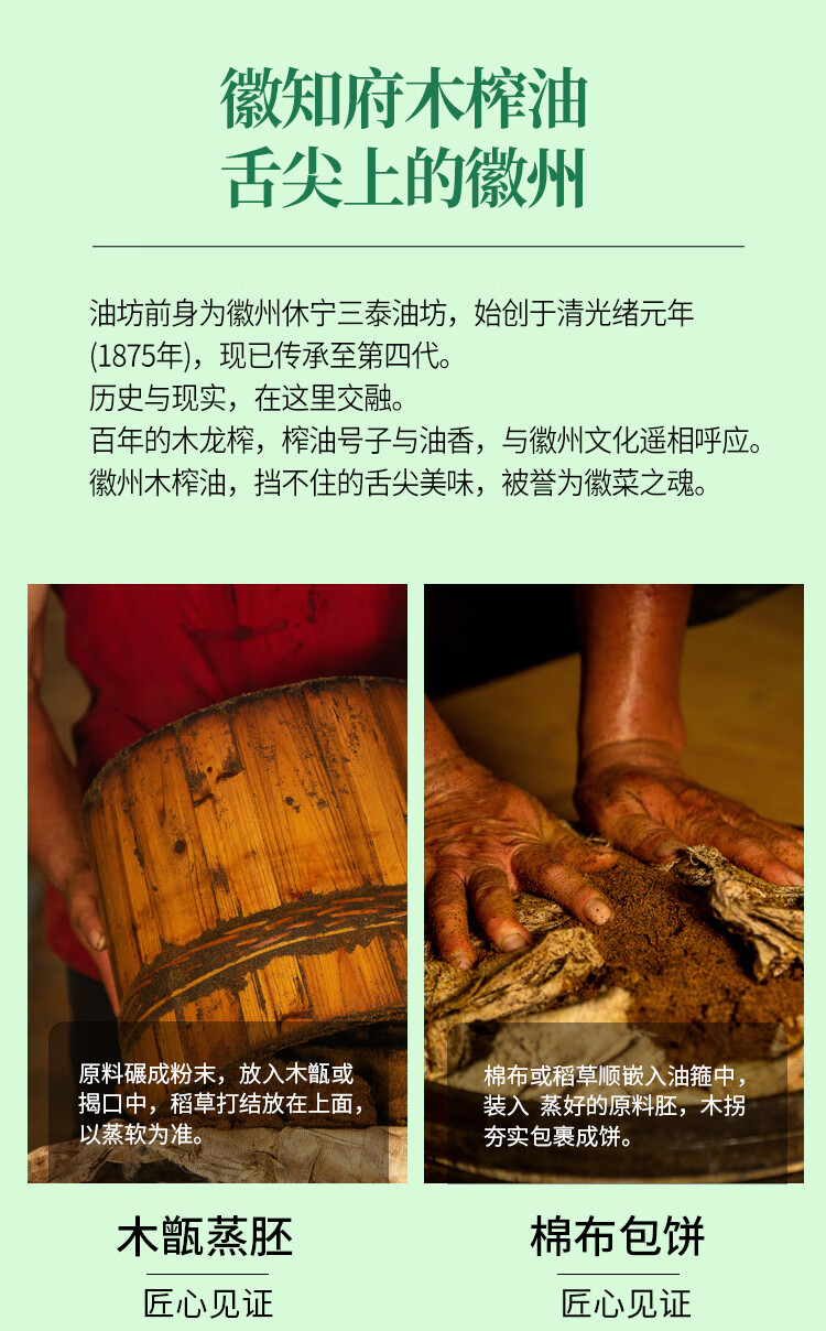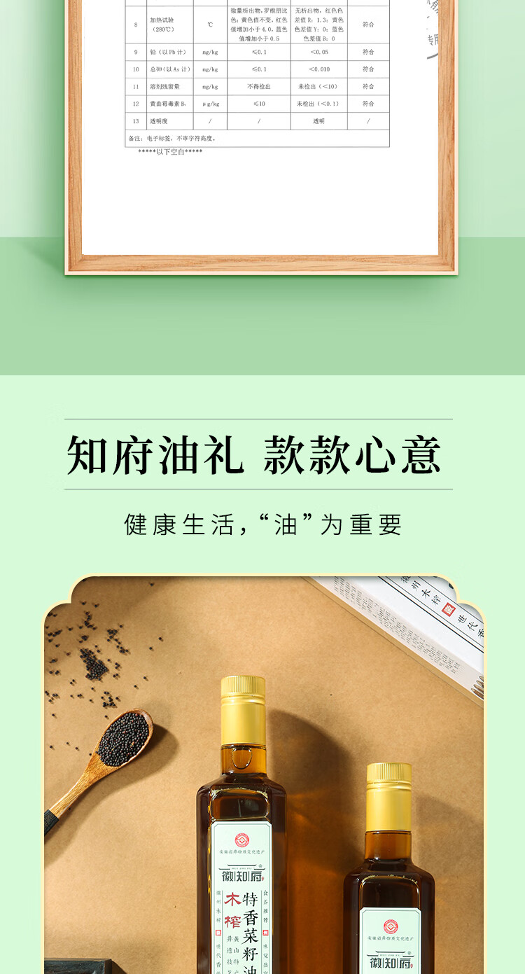 商品名称:徽知府 徽州木榨特香菜籽油特惠装500ml 6972720190009-2