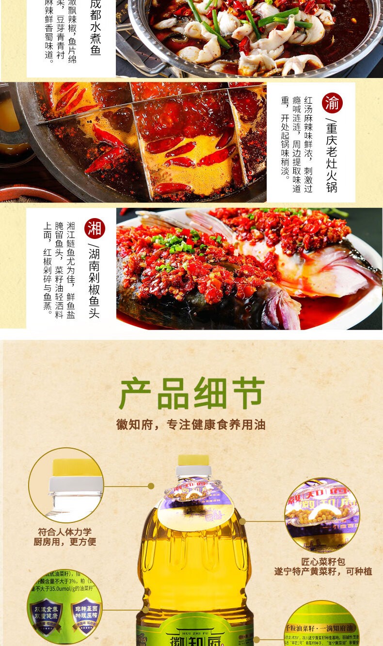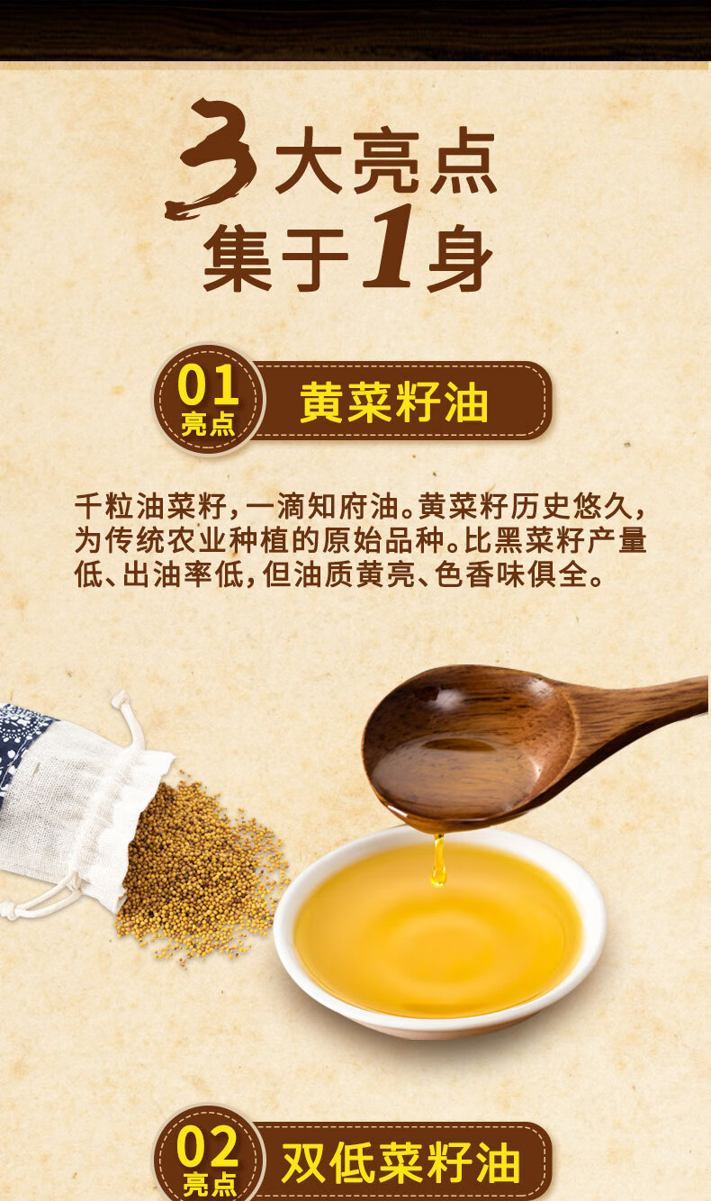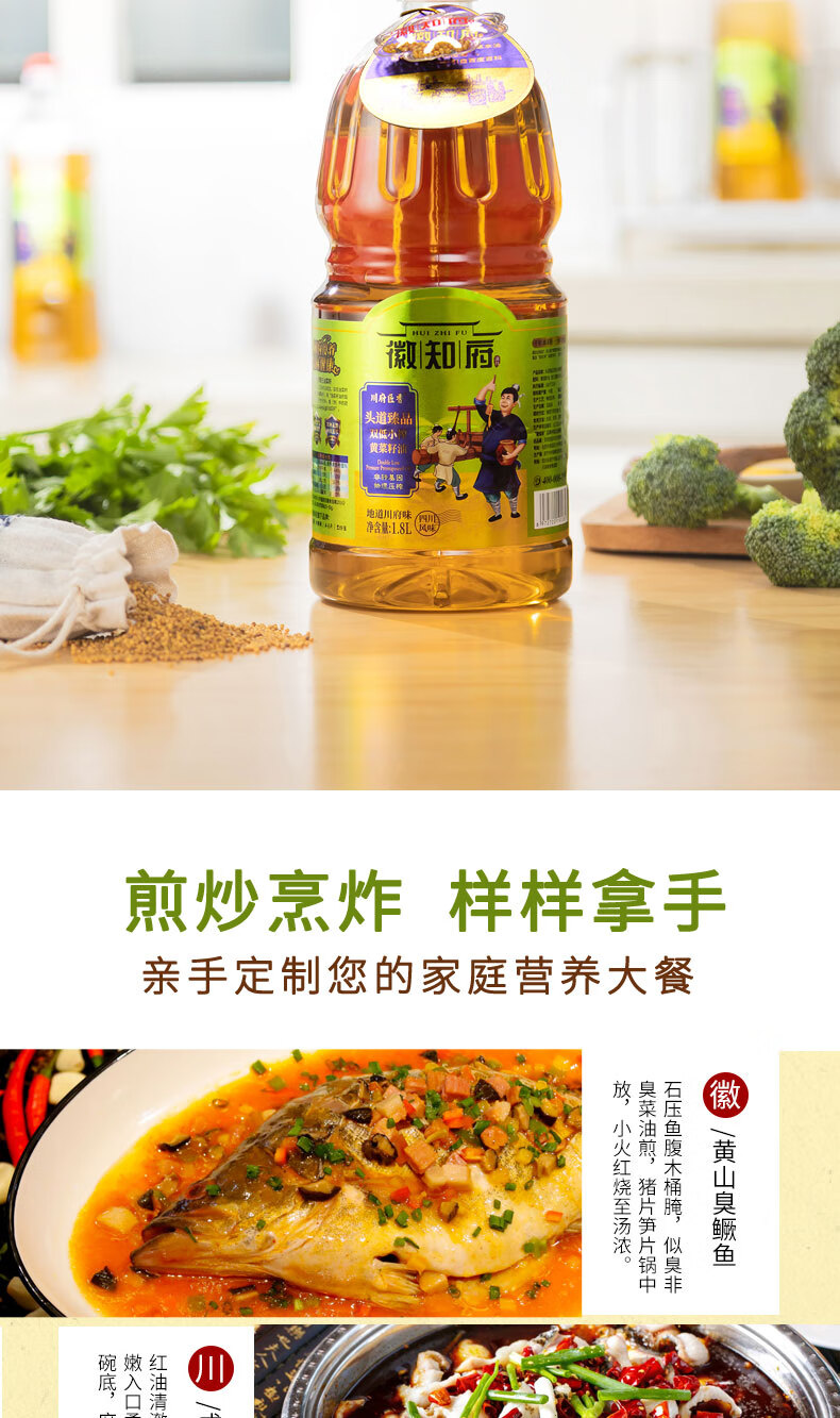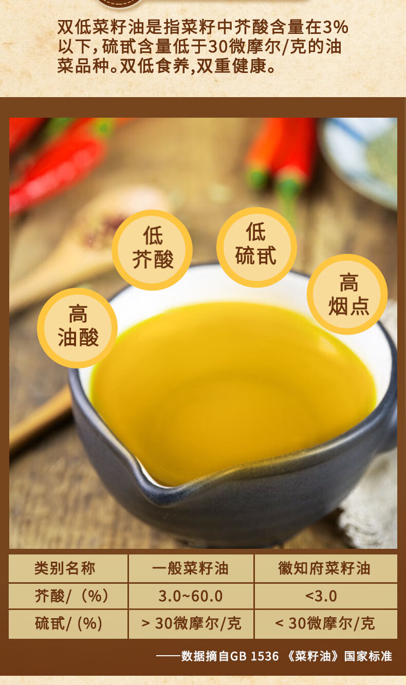 商品名称:徽知府 头道臻品双低小榨黄菜籽油900ml*2 6972720190108