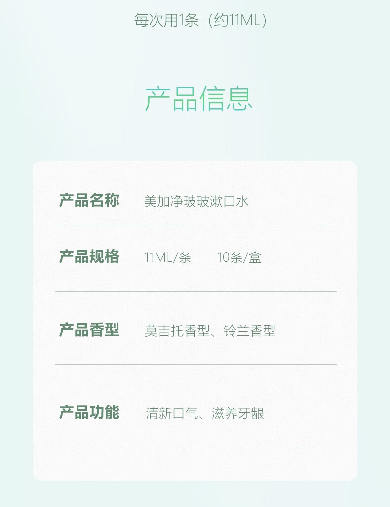 商品名称:美加净莫吉托玻玻漱口水 11ml*10条*3盒 6901177053896