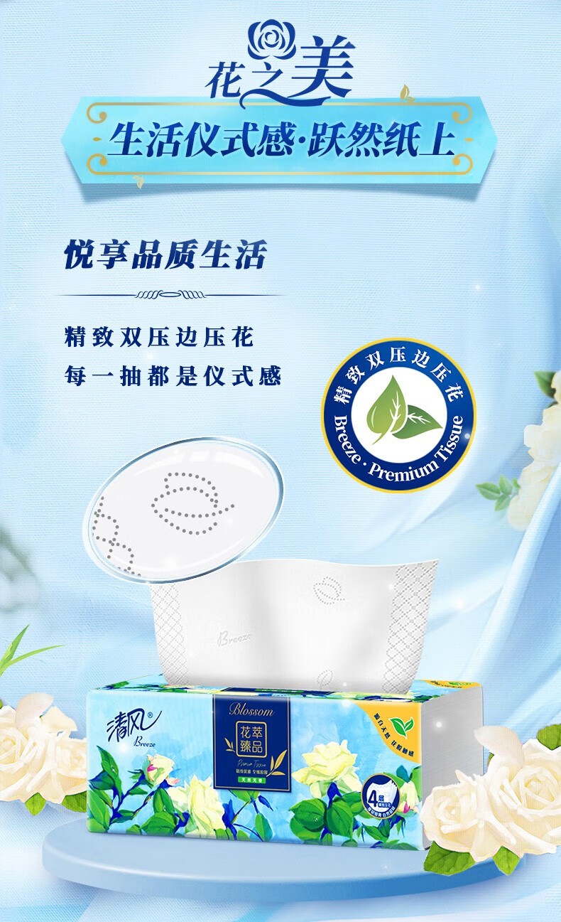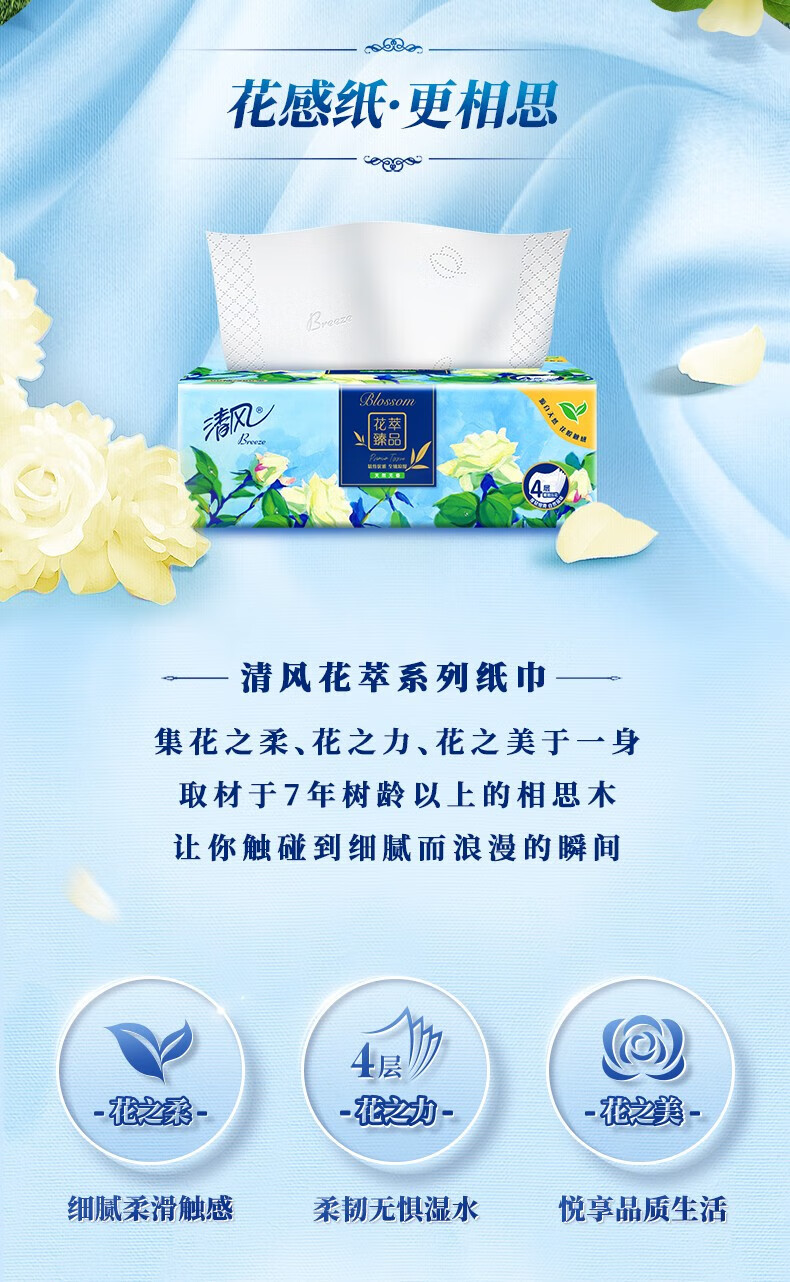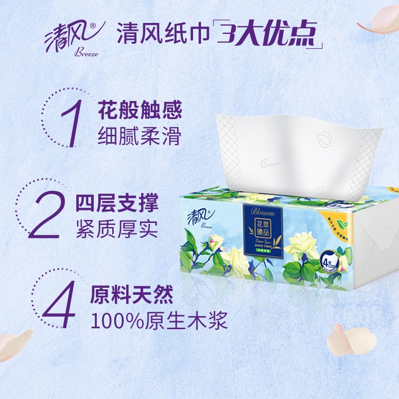 商品名称:清风 花萃抽纸12提*4包*4层加厚*80抽
