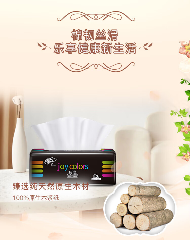 商品名称:清风 乐逸纸巾抽取式面巾纸 4包*100抽*3层