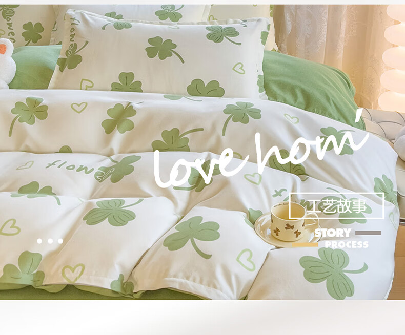 罗曼罗兰家纺-加厚磨毛印花四件套200*230CM 嘟嘟熊/幸福定制/ 芸草香 下单备注颜色 6925314751803