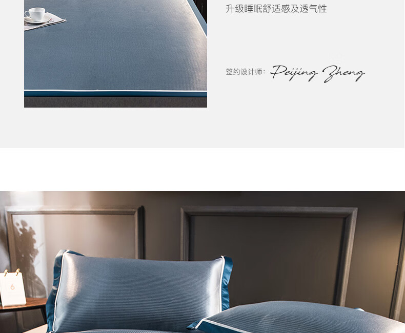 麦上家居 - 可水洗碳光抗菌冰丝凉席三件套180*200cm 咖啡/嫩粉/深蓝 下单备注颜色 6975924272342