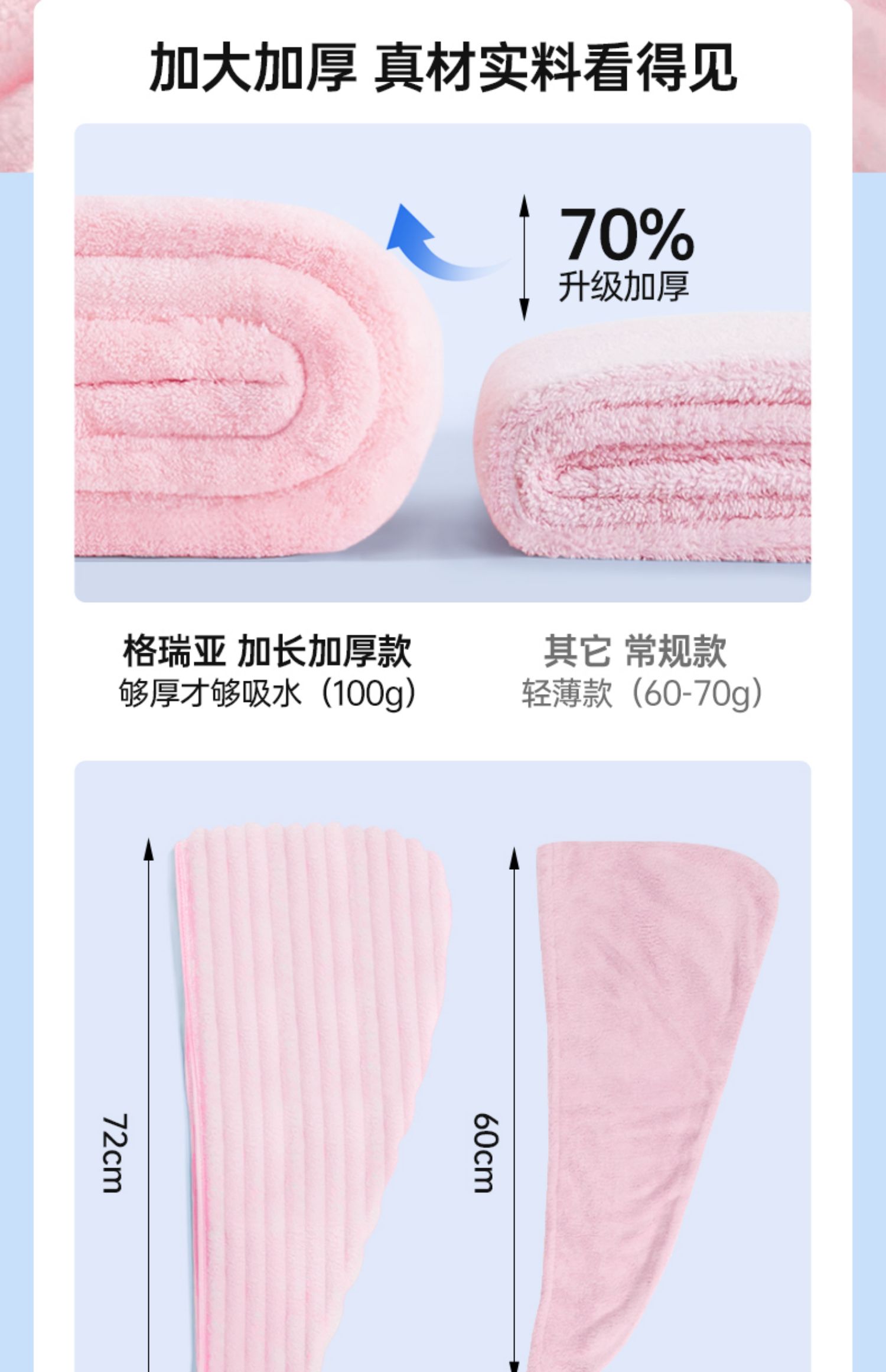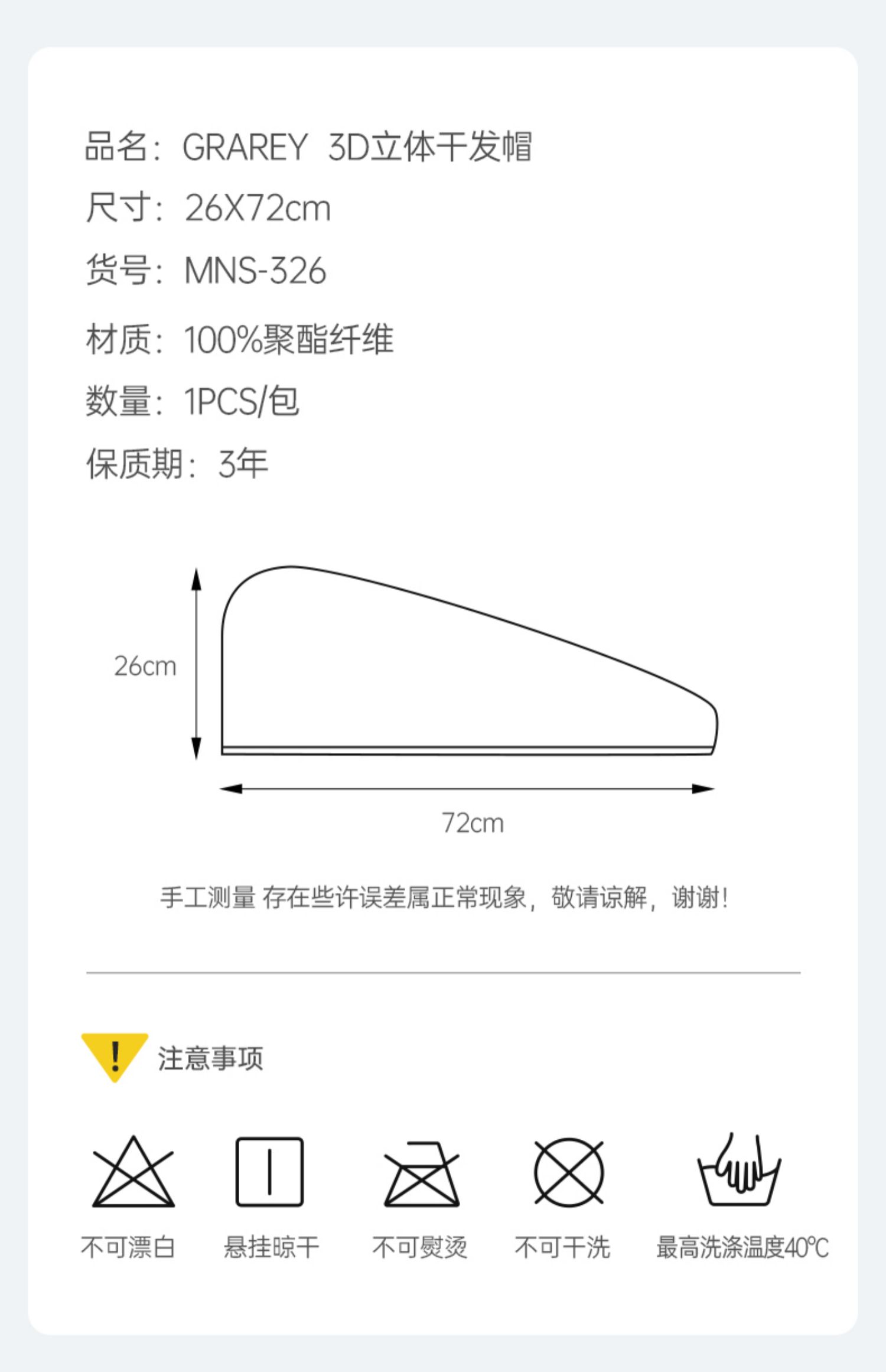 商品名称:格瑞亚GRAREY 3D立体干发帽 5A抗菌MNS-326 白色/粉色/白色 可选下单备注颜色 6975217181832
