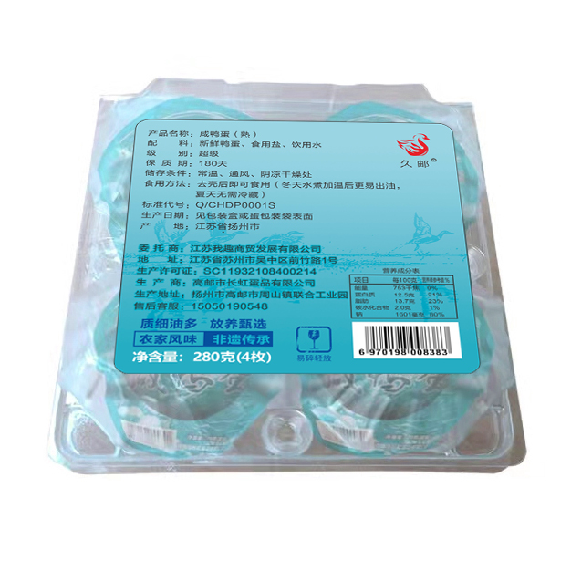 商品名称:久邮 咸鸭蛋 2盒*4枚吸塑装*70g