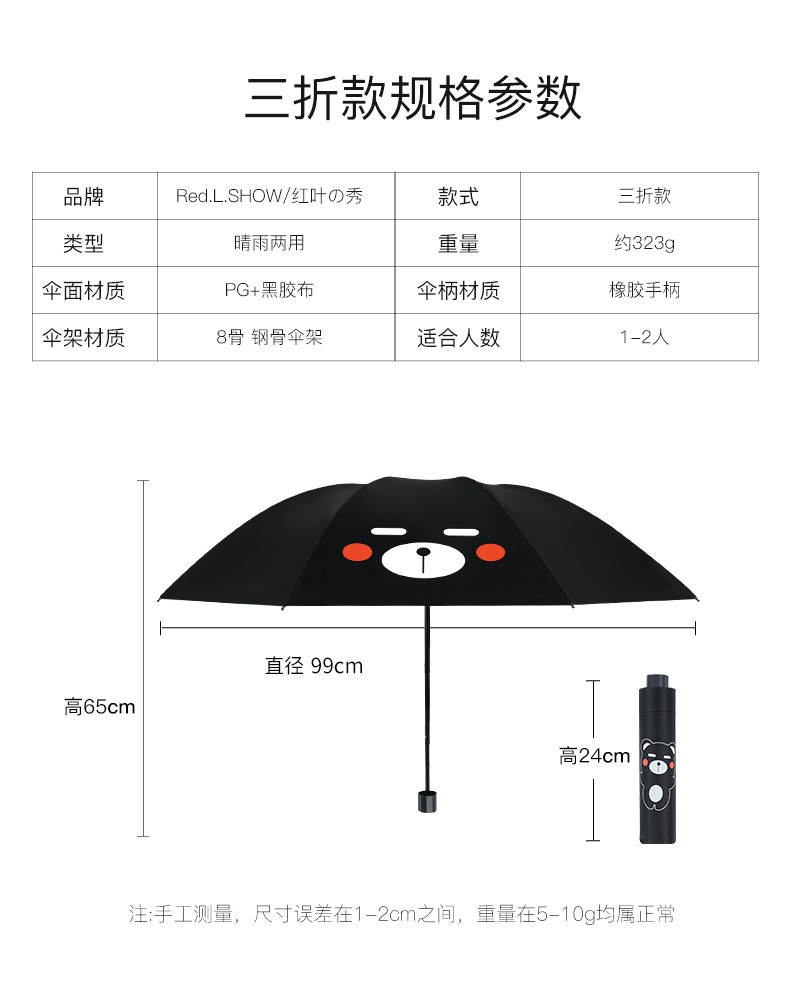 商品名称:红叶 三折呆呆熊7434 D7434-H01 黑色 692699117434