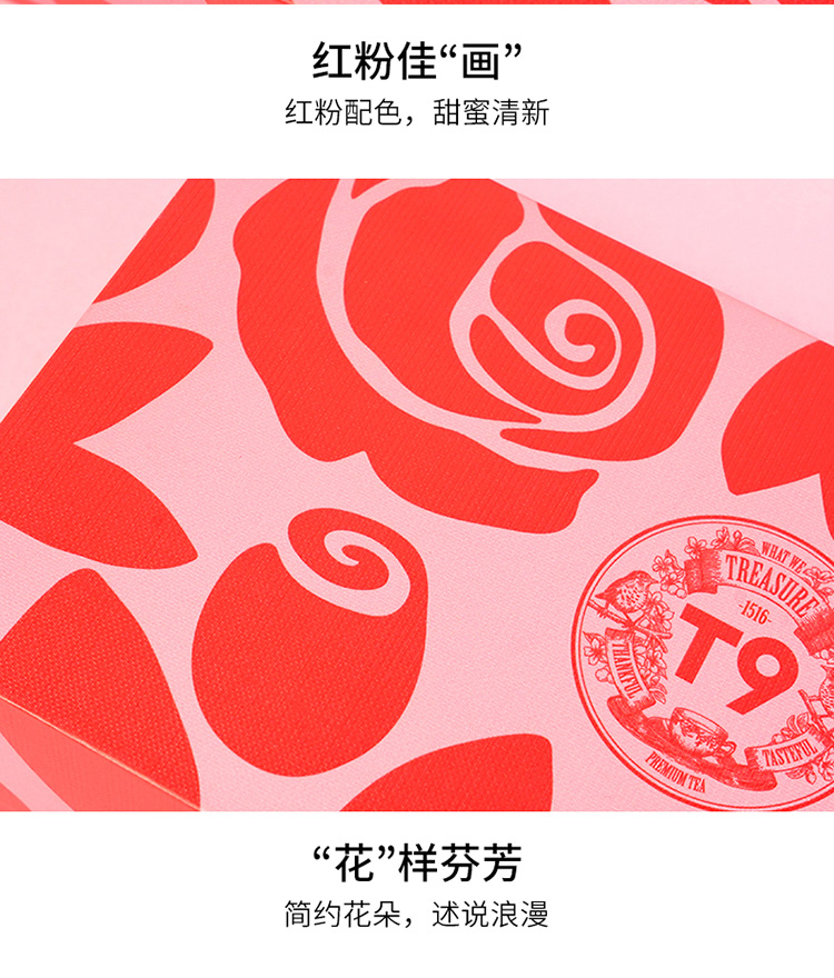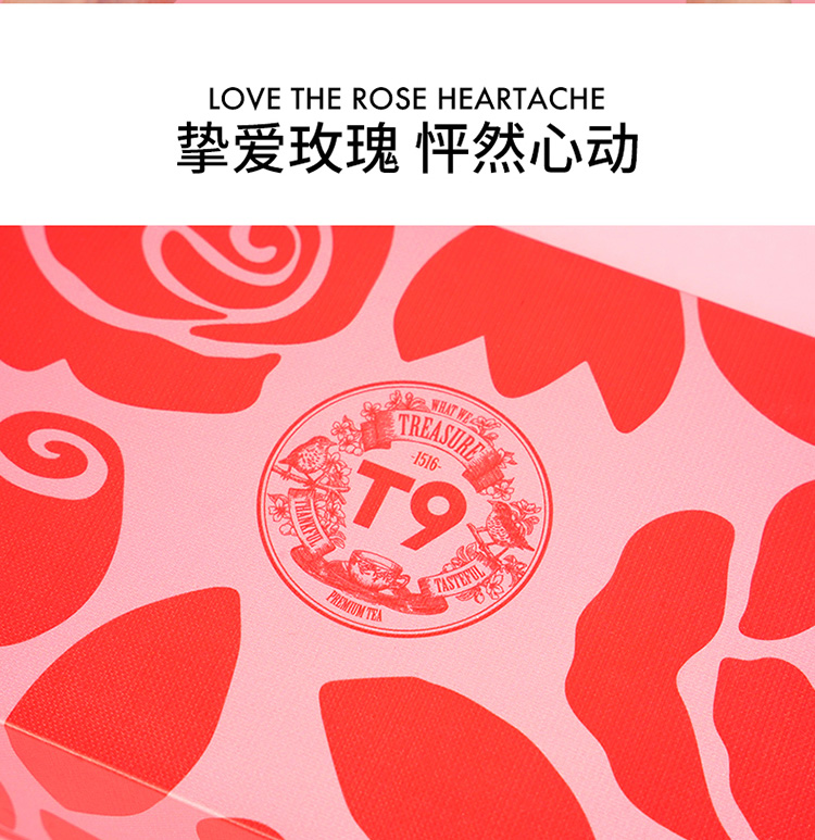T9 挚爱玫瑰礼盒 白桃乌龙茶50g*1罐 红金几何马克杯*1只