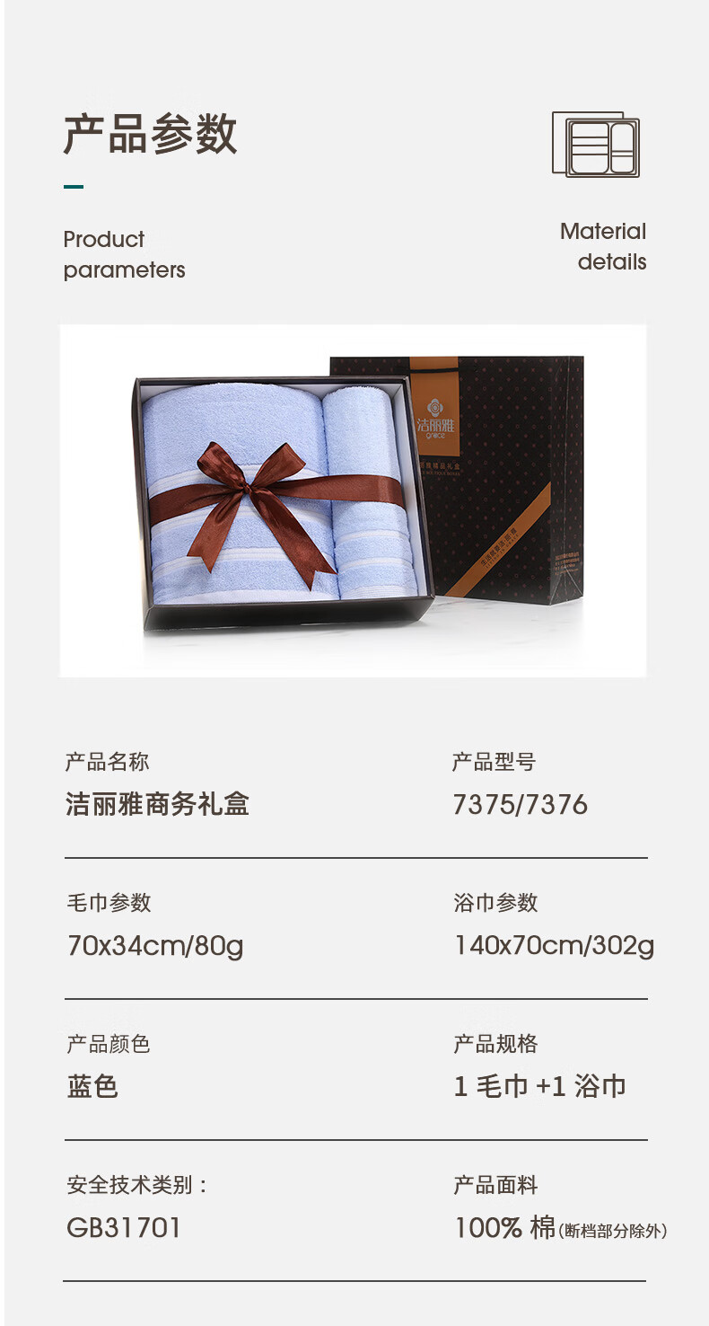 洁丽雅(Grace) 浴巾加毛巾组合 可定制绣字毛巾*1条浴巾*1条20230052 6972139000852