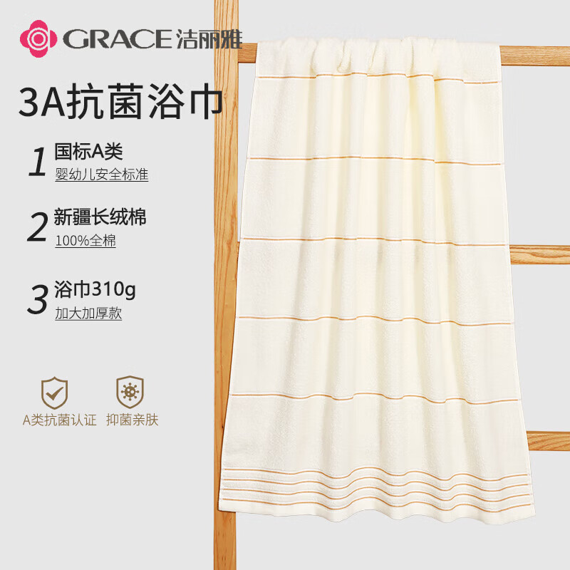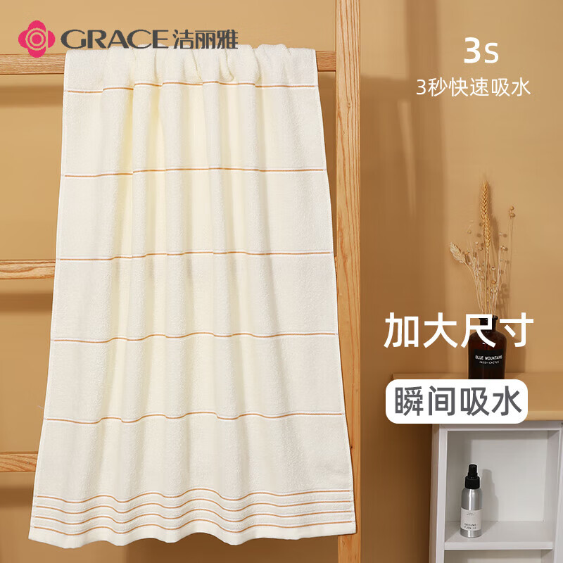 洁丽雅(Grace) A类全棉加厚洗澡巾 成人男士条纹素色浴巾 140cm*70cm 310g 米色20230053 6925954433787