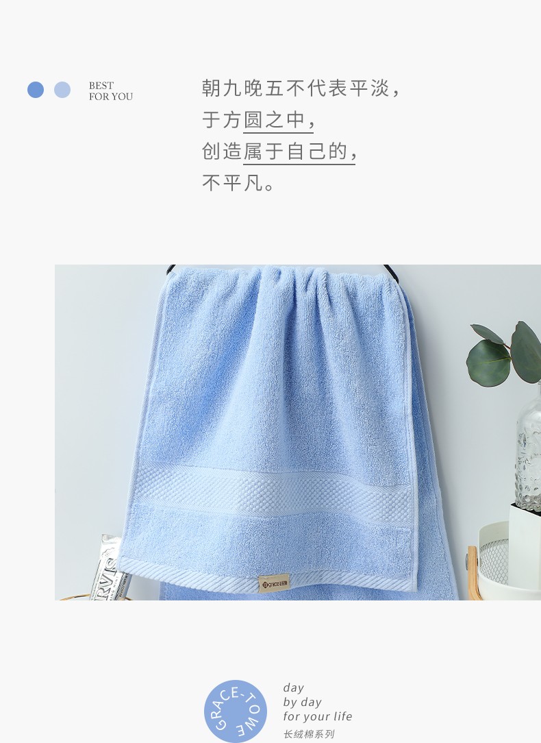 洁丽雅(Grace)A类毛巾纯棉素色缎档大面巾加厚洗澡柔软吸水洗脸巾72*34cm 100g 浅灰20230064 6942203426468