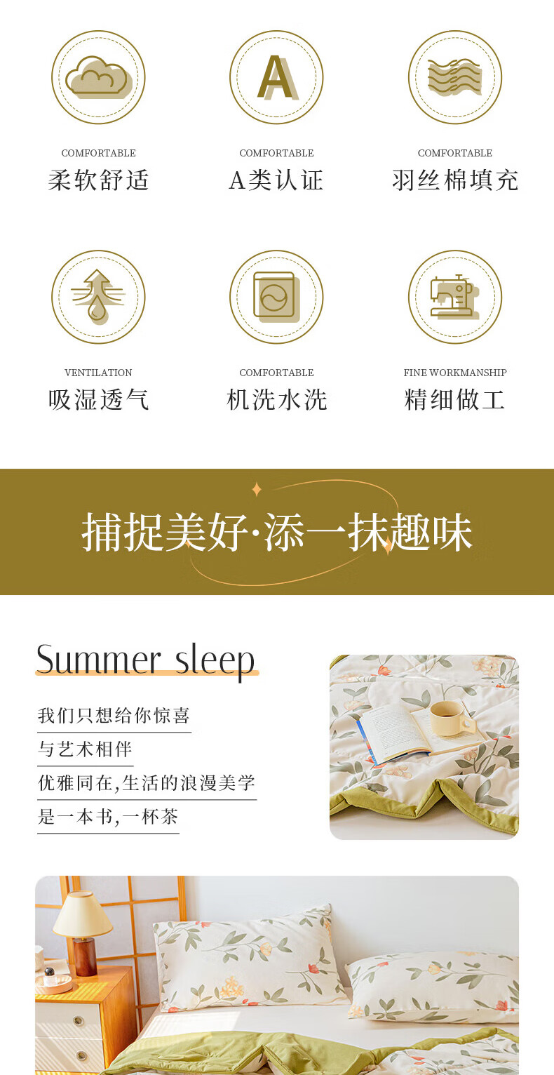 洁丽雅(Grace)双层纱水洗棉夏被200x230cm 乔凝JF-240015 6972139002238