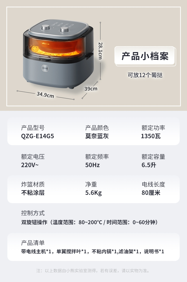 商品名称:小熊 空气炸锅 6.5L QZG-E14G5