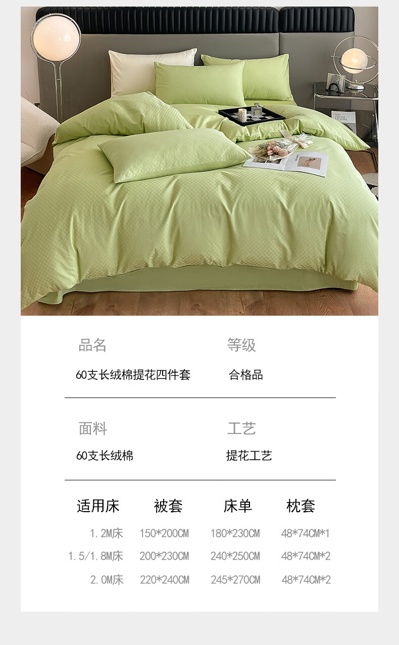 商品名称:洁丽雅 60支长绒棉纯棉四件套GQGGT02(纯果绿)200*230cm