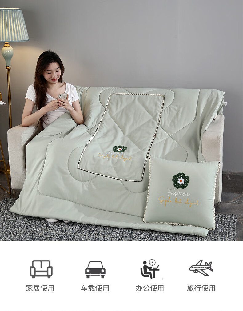 洁丽雅 水洗棉麻抱枕被JLY-SJ129(香雪兰-豆绿色)40*40cm
