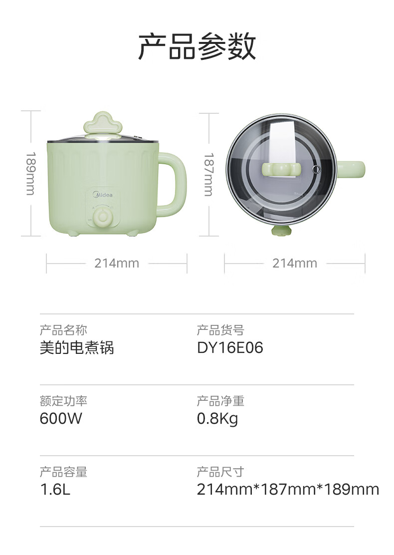 商品名称:美的 云朵小煮锅MC-DY16E06 6936718324708 苏打绿
