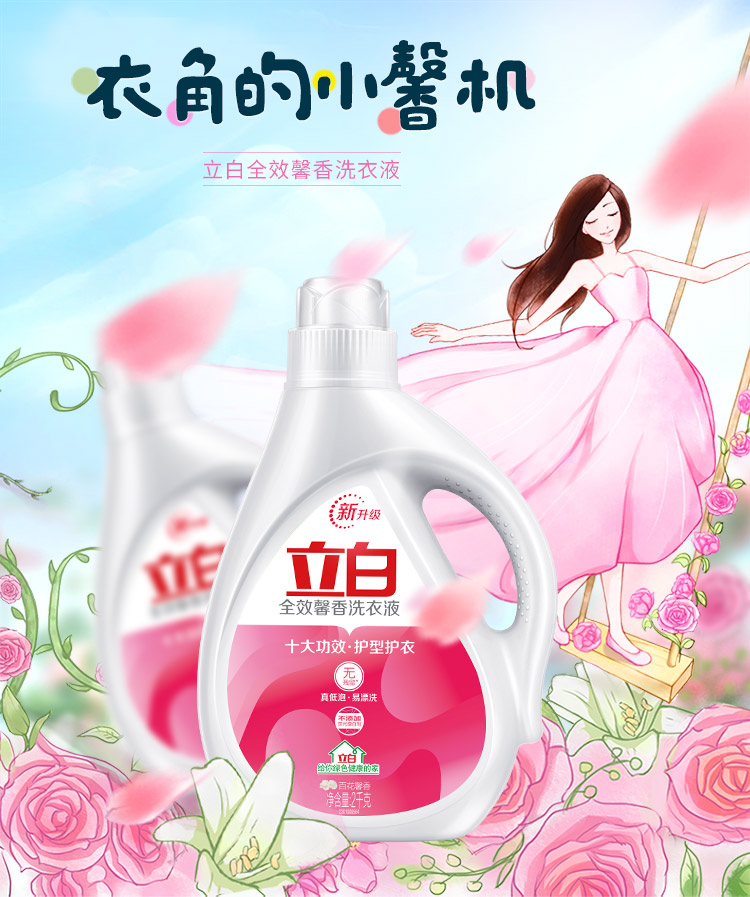 商品名称:立白全效馨香洗衣液 手洗机洗 持久留香 花香护衣洁净去味 2kg瓶装*2瓶