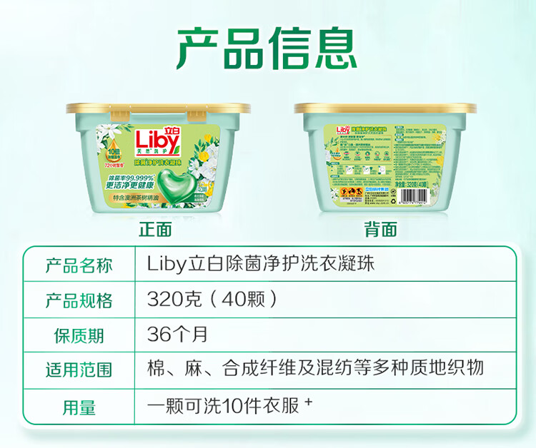 商品名称:立白除菌净护香氛洗衣凝珠 防串色 浓缩香氛洗衣液 40颗 依兰茉莉 6920174769487